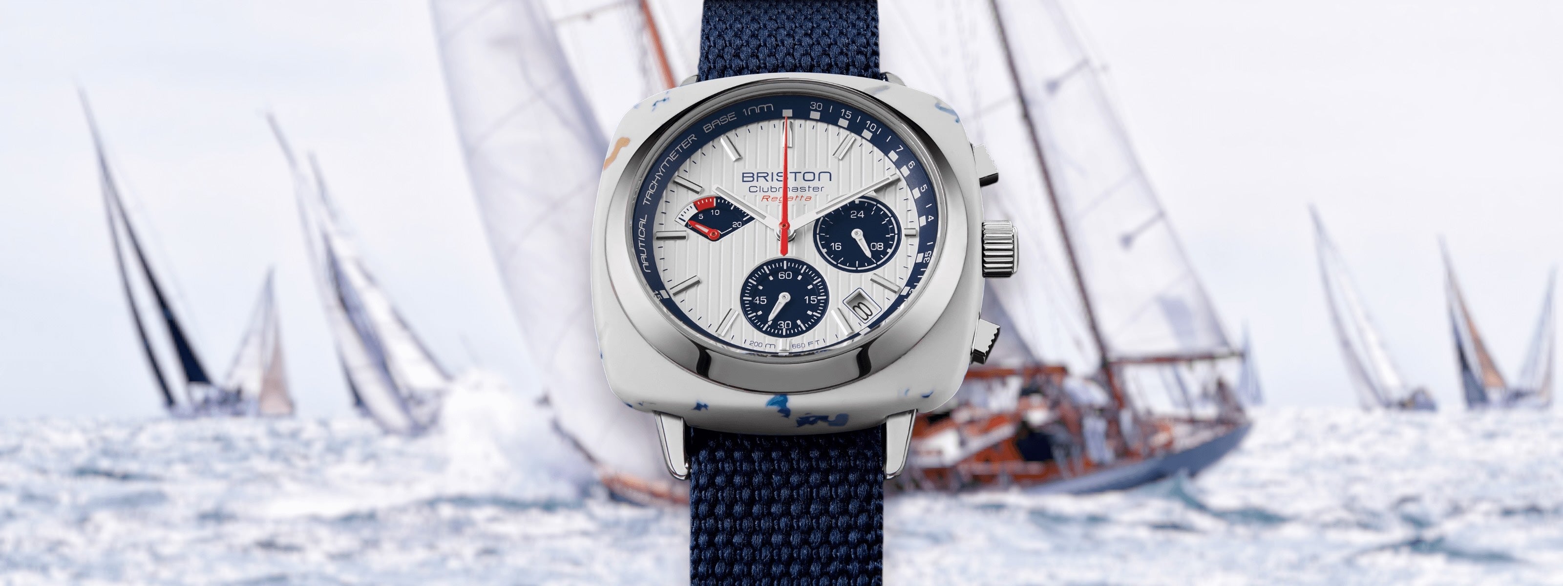 Con motivo del lanzamiento de la nueva colección Clubmaster Regatta, Briston se ha asociado con la ONG Les Plus Belles Baies du Monde, cuya misión es proteger las costas y los océanos del mundo. Esta colaboración ha dado lugar a la creación de un modelo único e innovador con una caja de plástico reciclado de color azul océano y una correa estilo NATO fabricada con plástico reciclado recuperado del mar Mediterráneo.