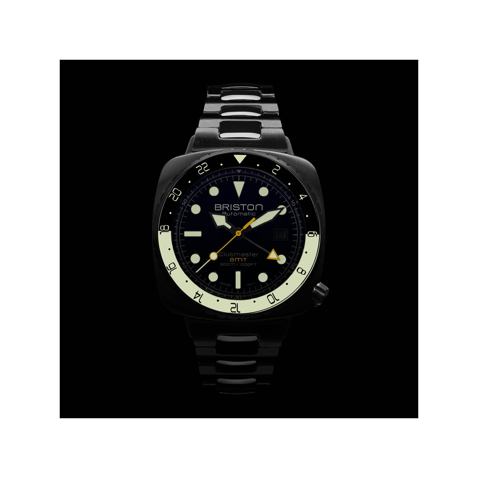 Pour une parfaite visibilité quelques soient les conditions, Briston a doté la Clubmaster Diver d'inserts luminescents en Superluminova® C1. Un matériau performant qui ne se dégrade pas et dont le cycle chargement/déchargement ne s'altère pas dans le temps.