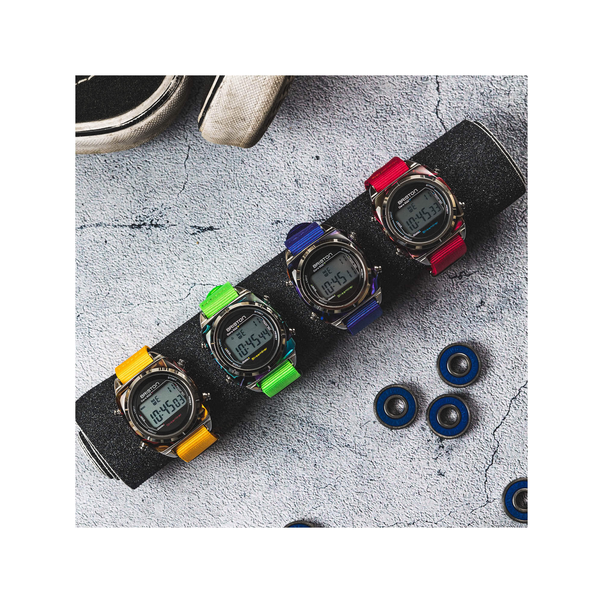 - Fonctions : Éclairage Full Auto LED, fonction de chronométrage -1/100 sec, 1 alarme quotidienne & fonction snooze, jour de la semaine, date, mois, heure digitale, format de l'heure 12/24 heures